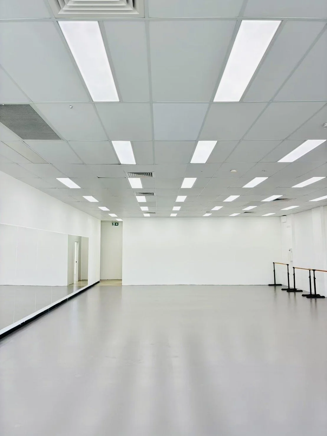 Includes: Tarkett flooring, portable ballet barres, full-length mirrors, air conditioning